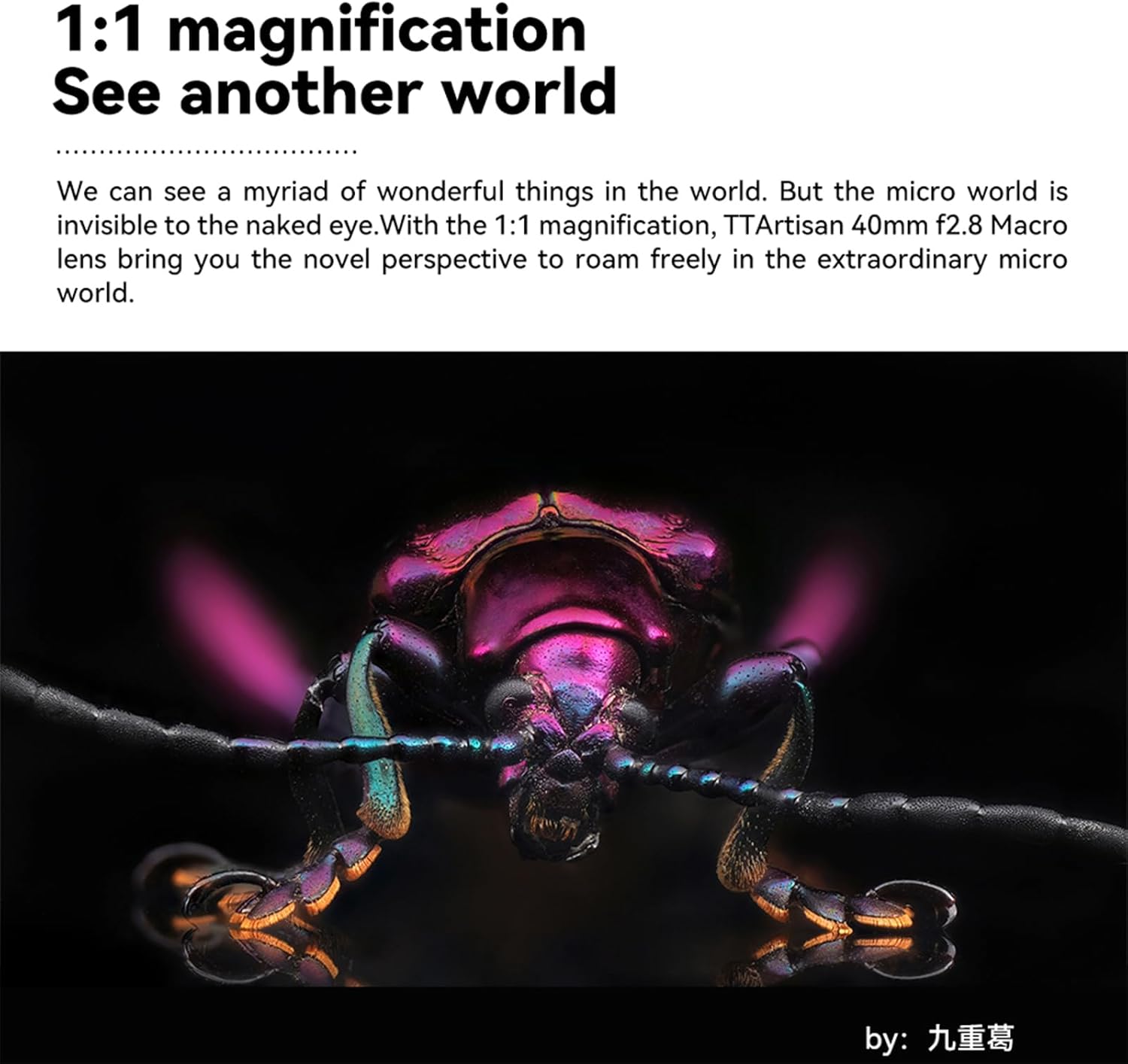 Constructed with high-quality materials, the TTArtisan 40mm f/2.8 Macro Lens is durable and reliable for long-term use. Its compact and lightweight design makes it convenient to carry around for all your photography adventures.